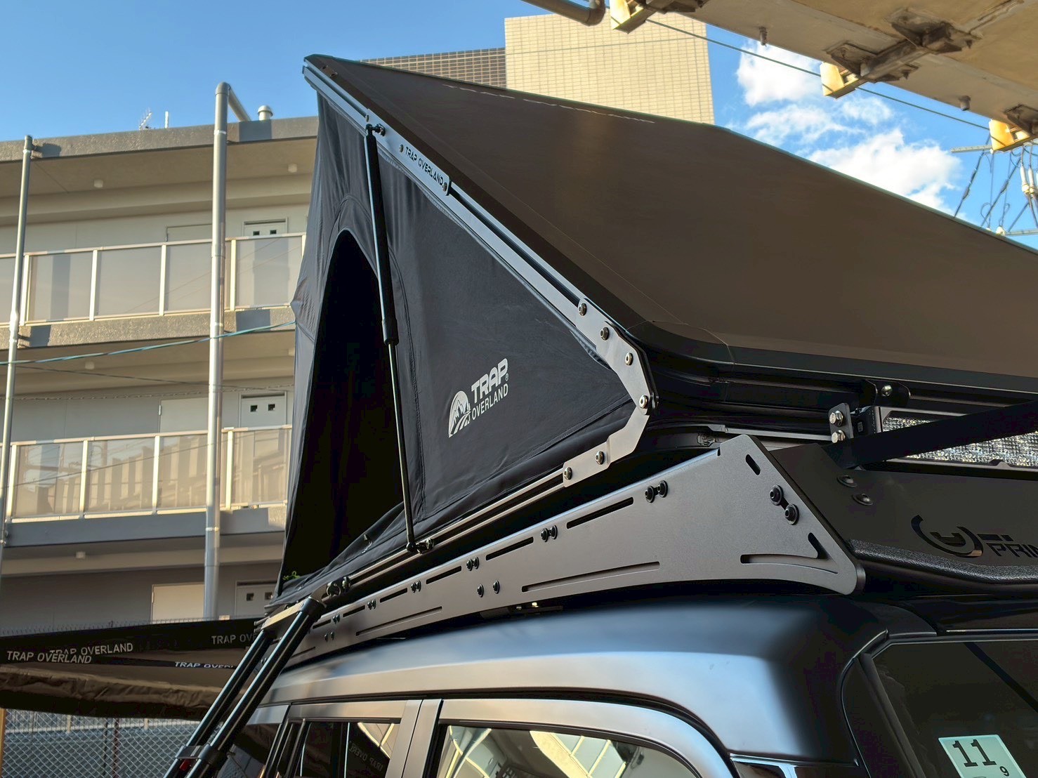 今回は、ランドクルーザー250に、TRAP OVERLANDの新型・薄型ルーフトップテント「X-Trip 2P」と、 ST270 Awningを同時に取り付けました。